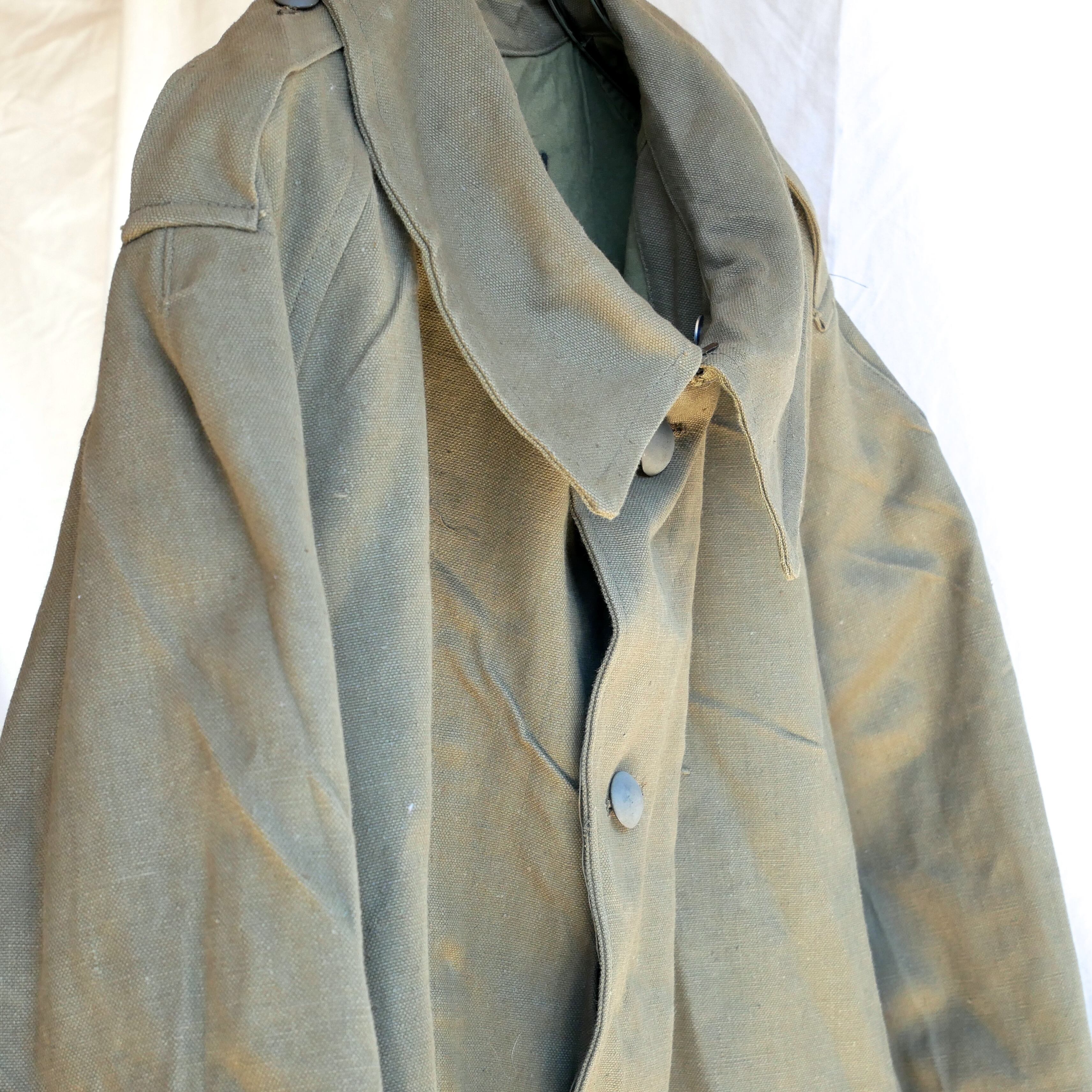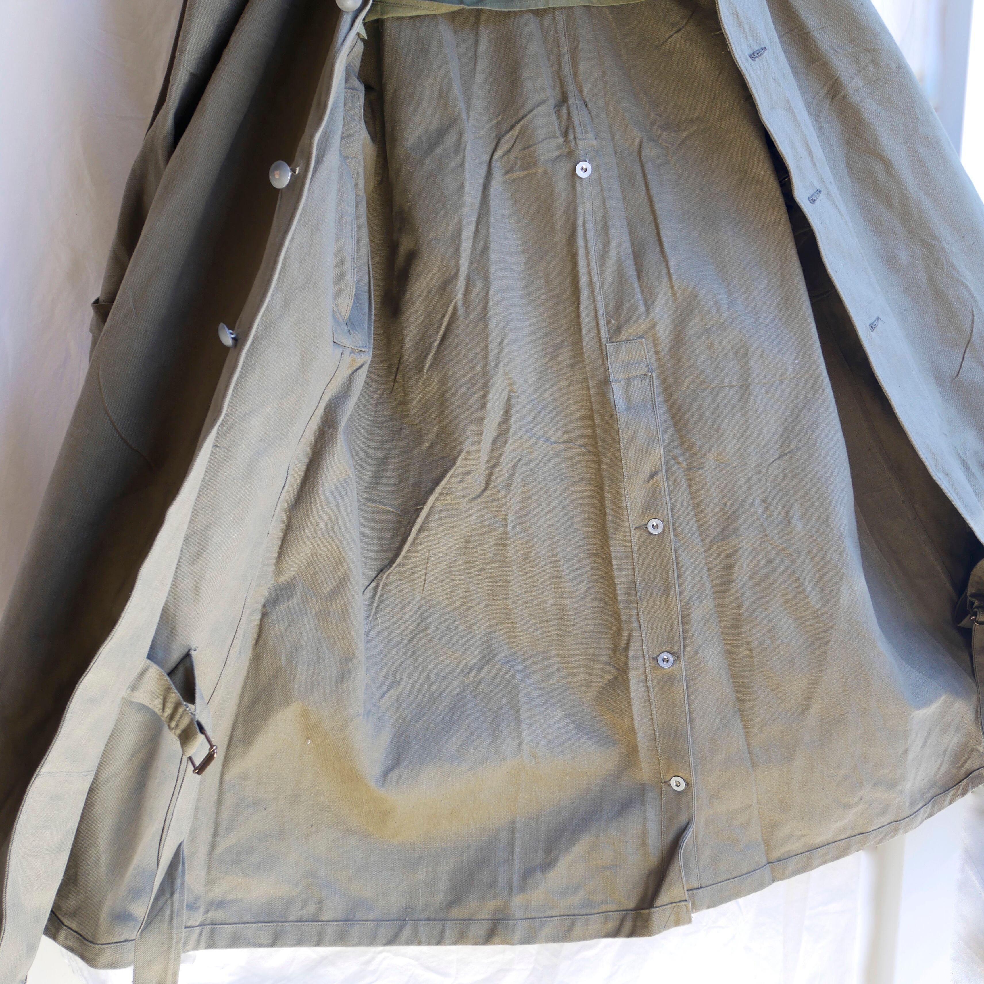 しっかりとしたオリーブグリーンのコットン生地に無骨な雰囲気が漂います。