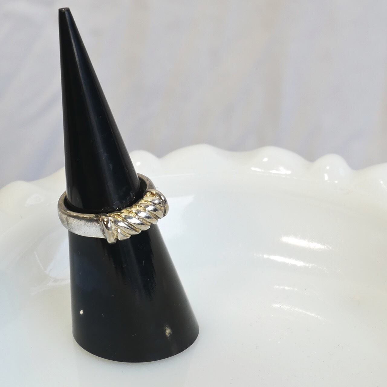 中央の織り模様がアクセントとなったシルバーリング。