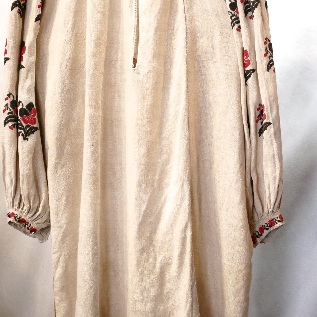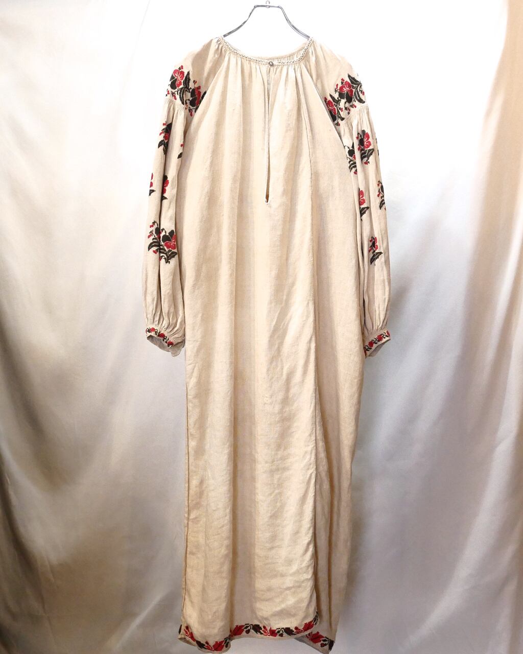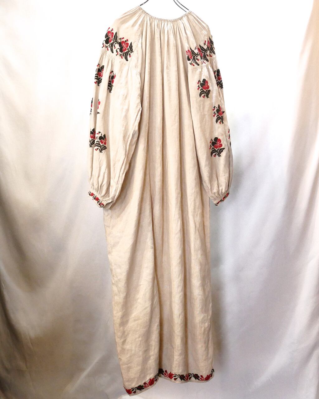 アンティークリネンで作られたウクライナ刺繍ワンピース。