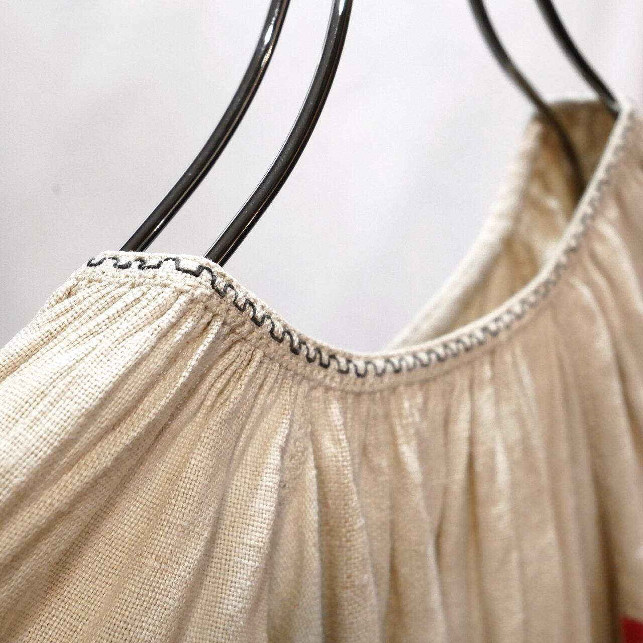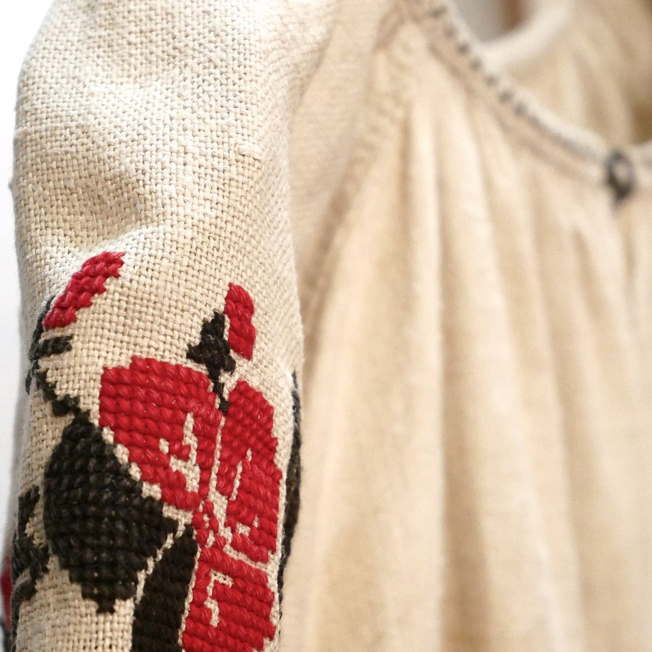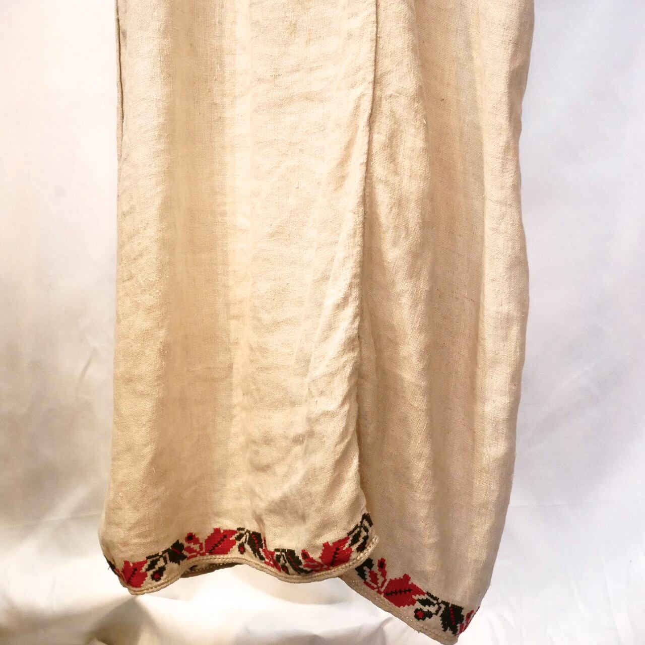 アンティークリネンで作られたウクライナ刺繍ワンピース。