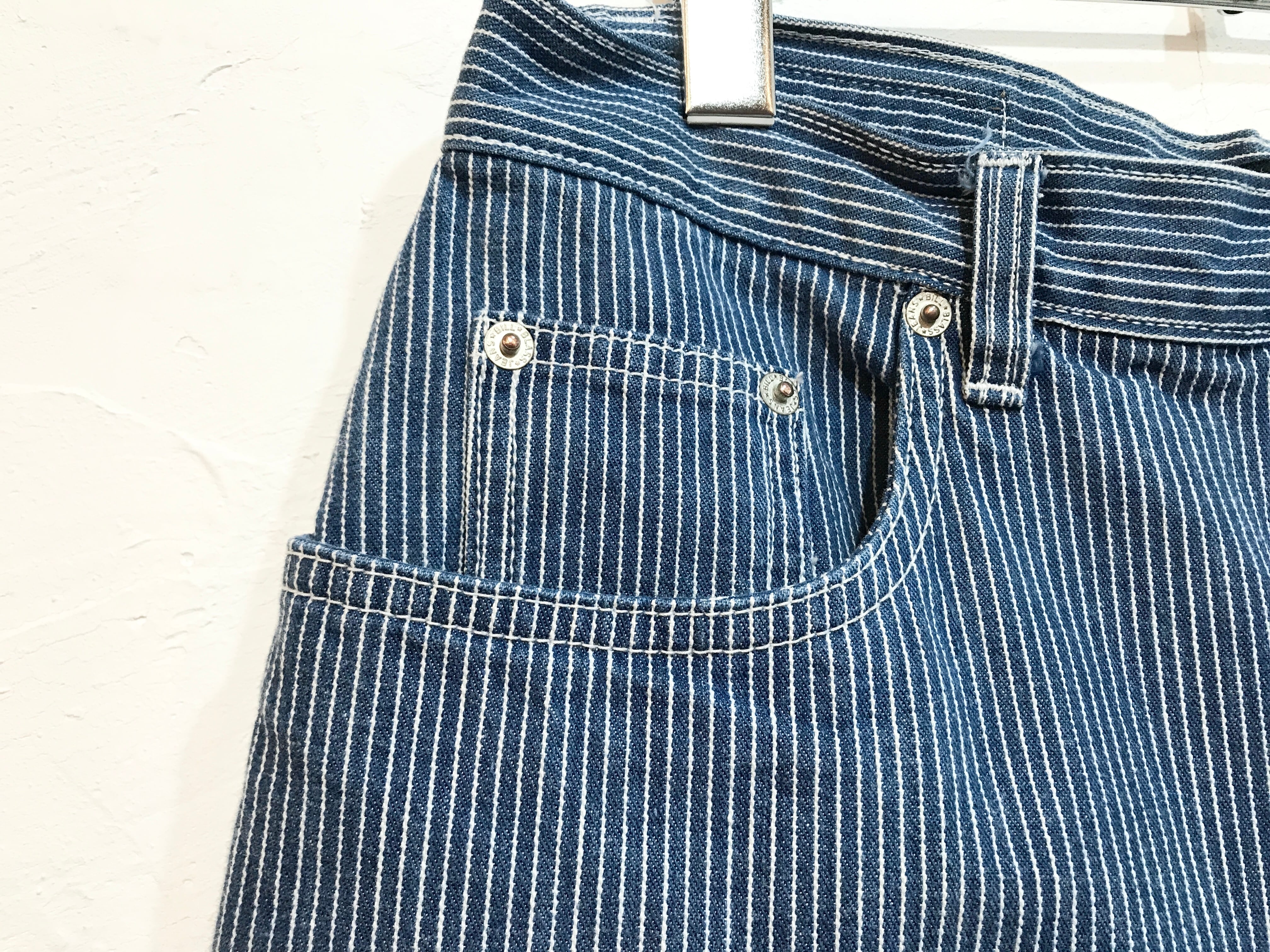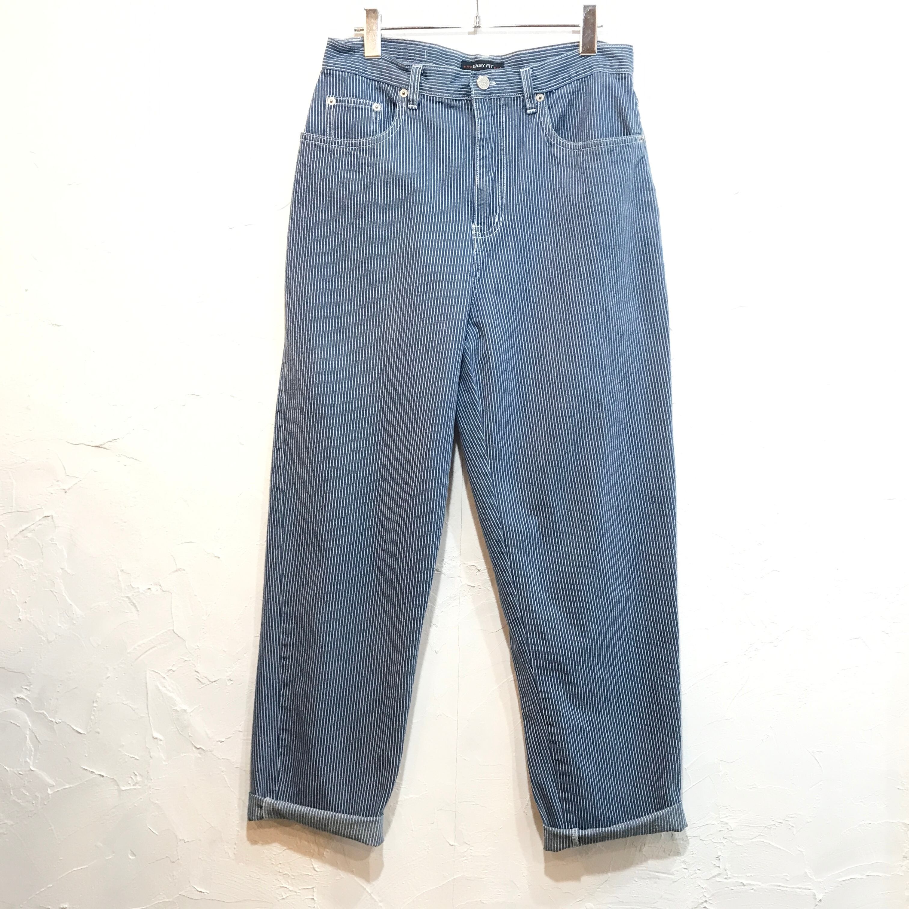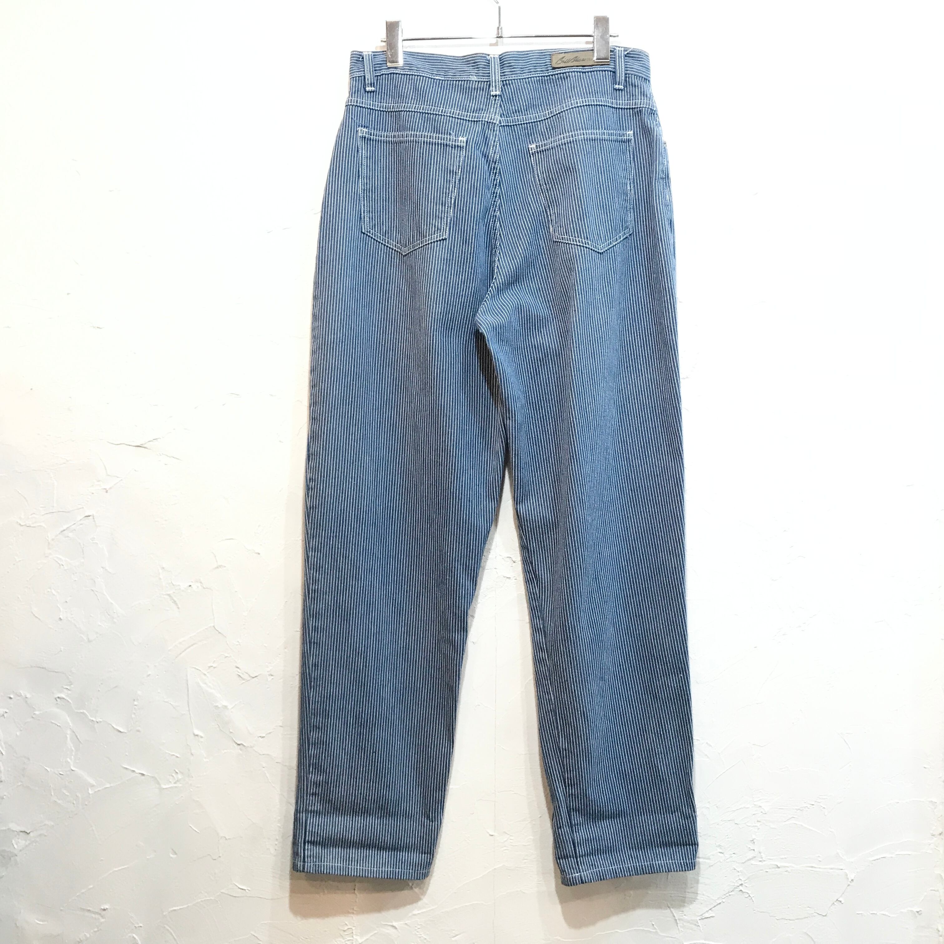 ゆるくデーパードしたヒッコリーパンツ。程よい厚みで柔らかく、履き心地が楽な一本。特に春夏には大活躍してくれそうな生地感です。