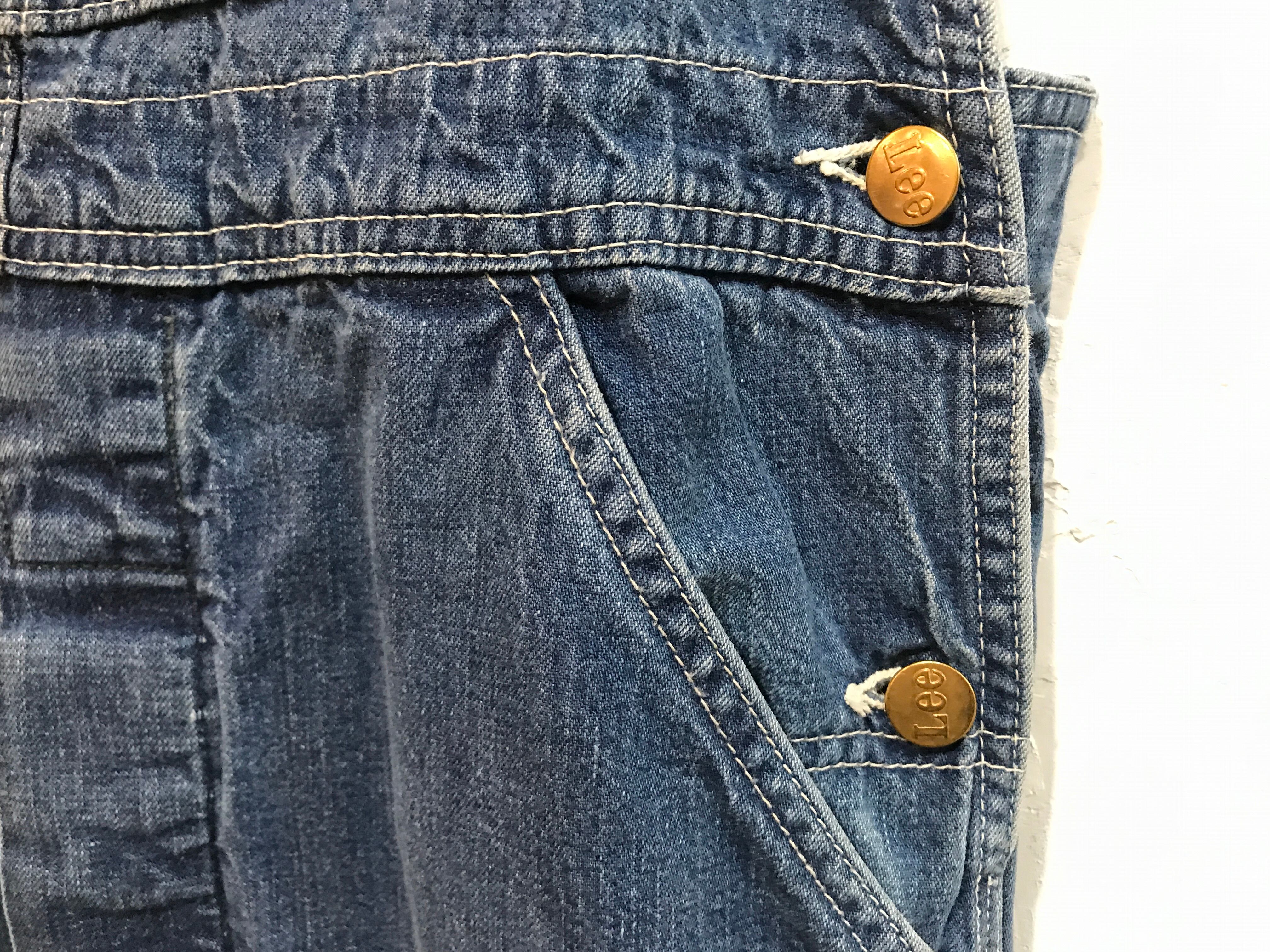 バックスタイルが特徴的で目を引く70年代のLeeのデニムオーバーオール。良い味が出てはいるものの状態は悪くはないです。