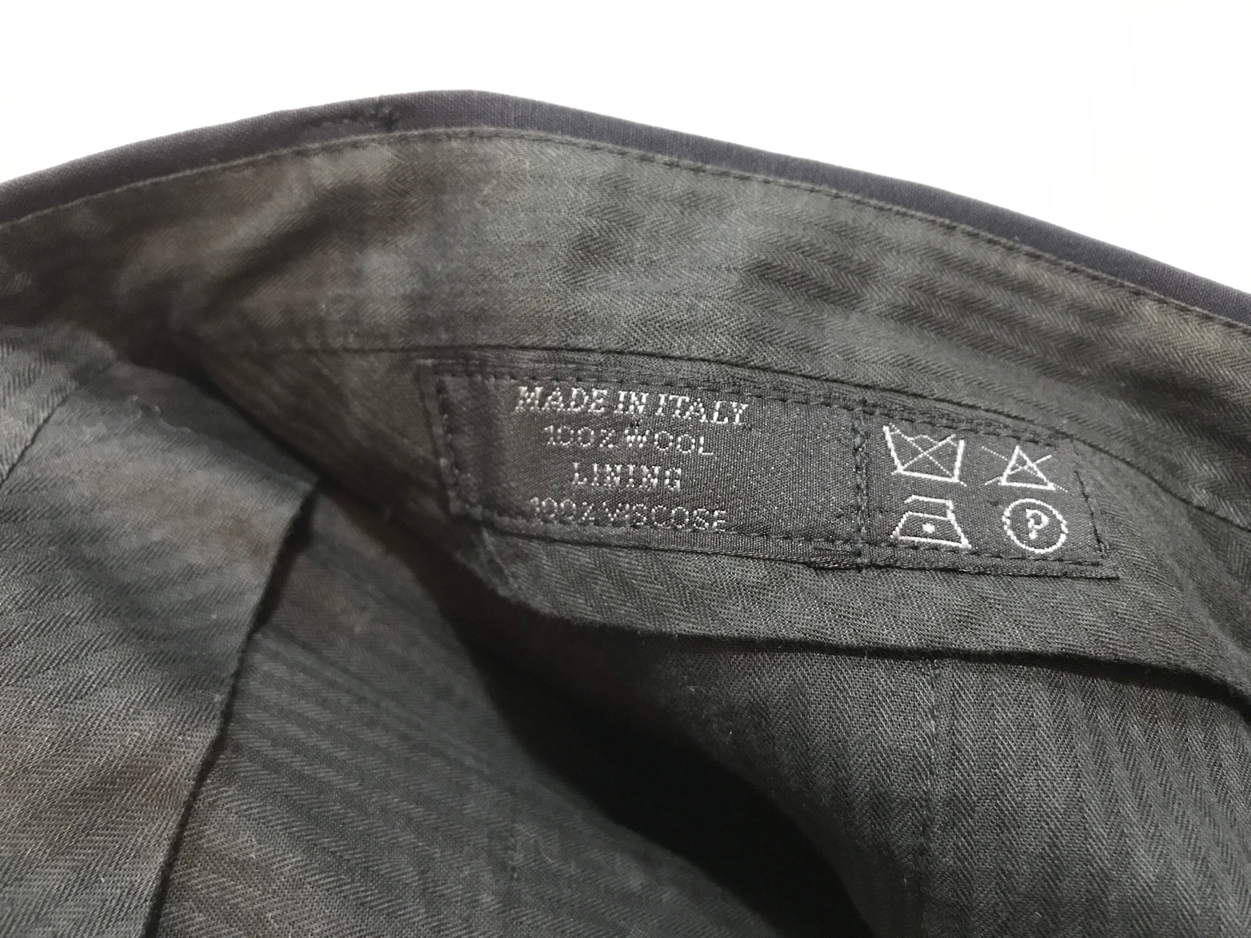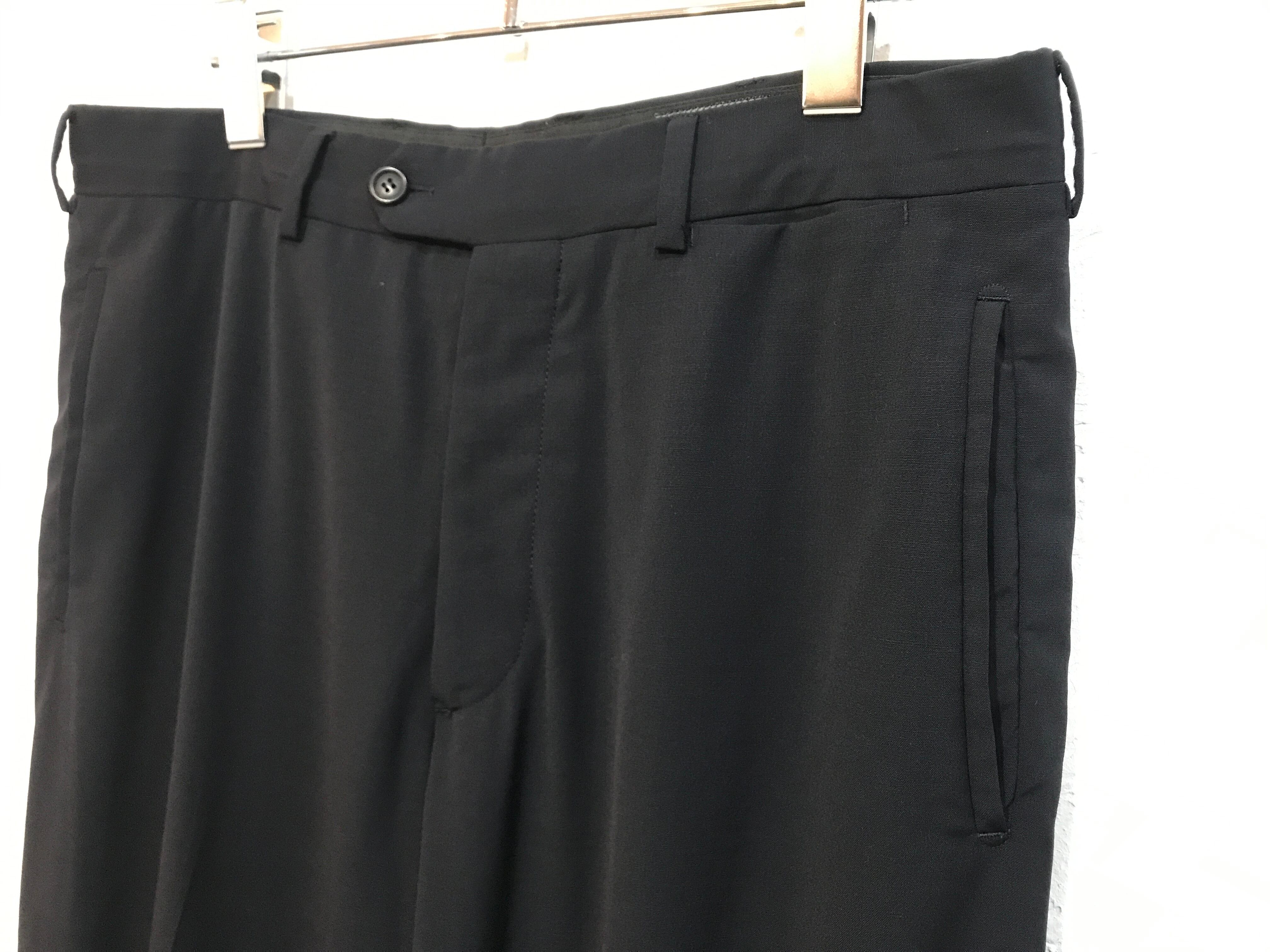 ゆるやかにテーパードがかったキレイなシルエット。一見ブラックなのですが限りなくブラックに近い、とても深いネイビーで上品な色味です。(ほとんどブラックにしか見えません。)ボタンフライ。