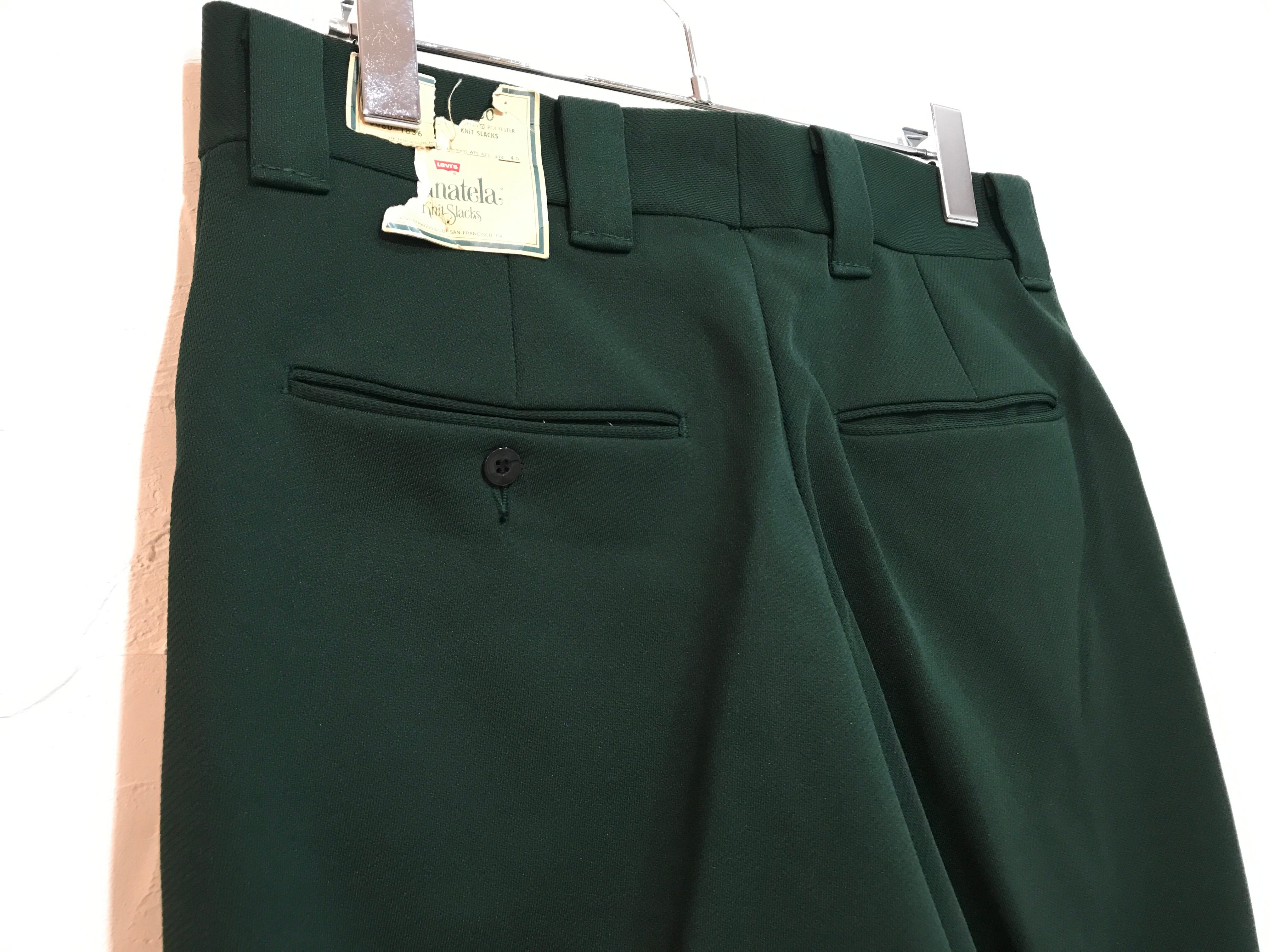 70年代Levi'sのPanatela Knit Slacks。貴重なデッドストック品です。70年代らしいフレアパンツ。深みのあるグリーンです。