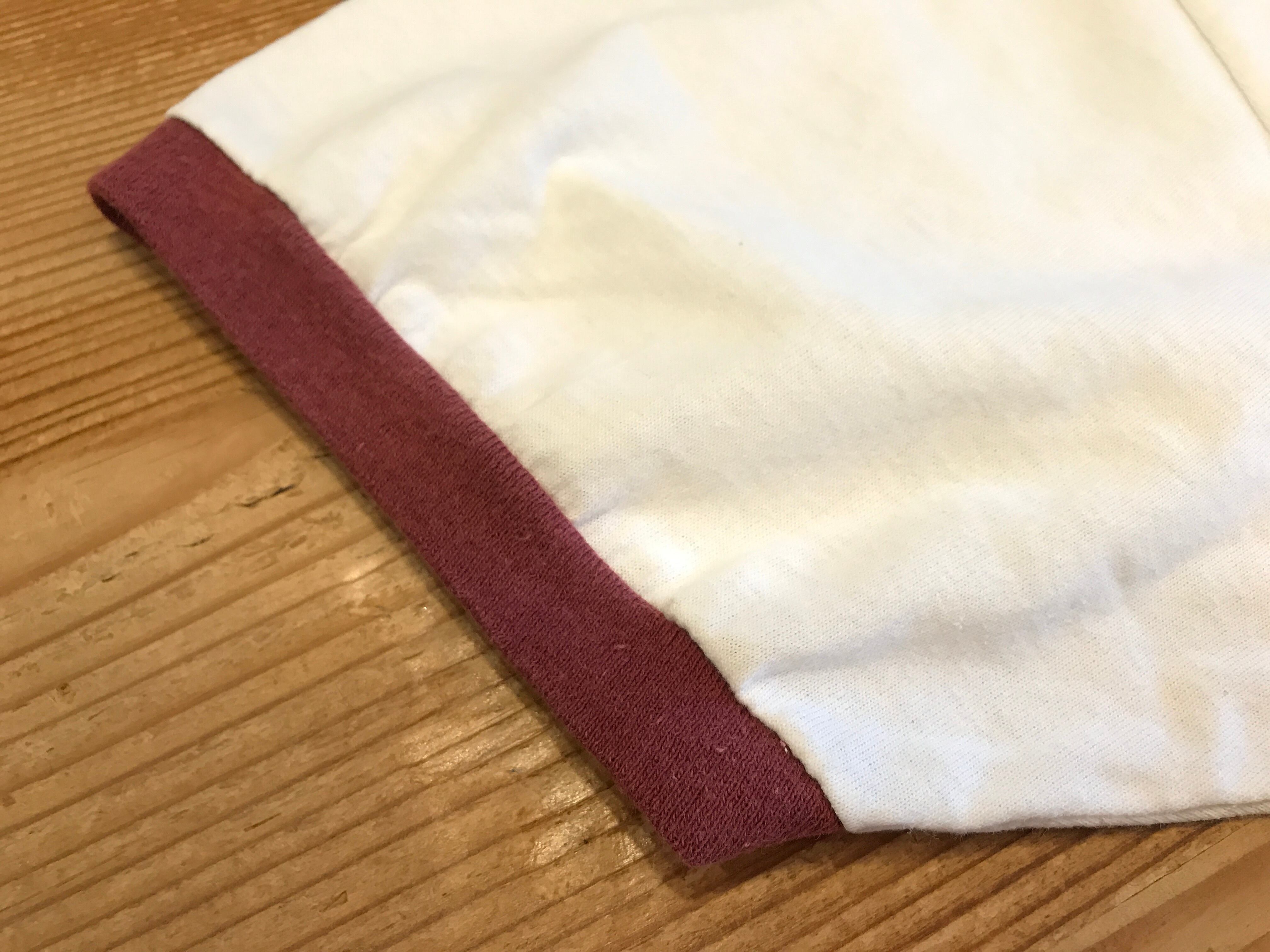 【USED】80s Champion チャンピオン リングTシャツ リンガーTシャツ 染み込み カレッジプリント ロゴ ホワイト×ワイン MINESOTA