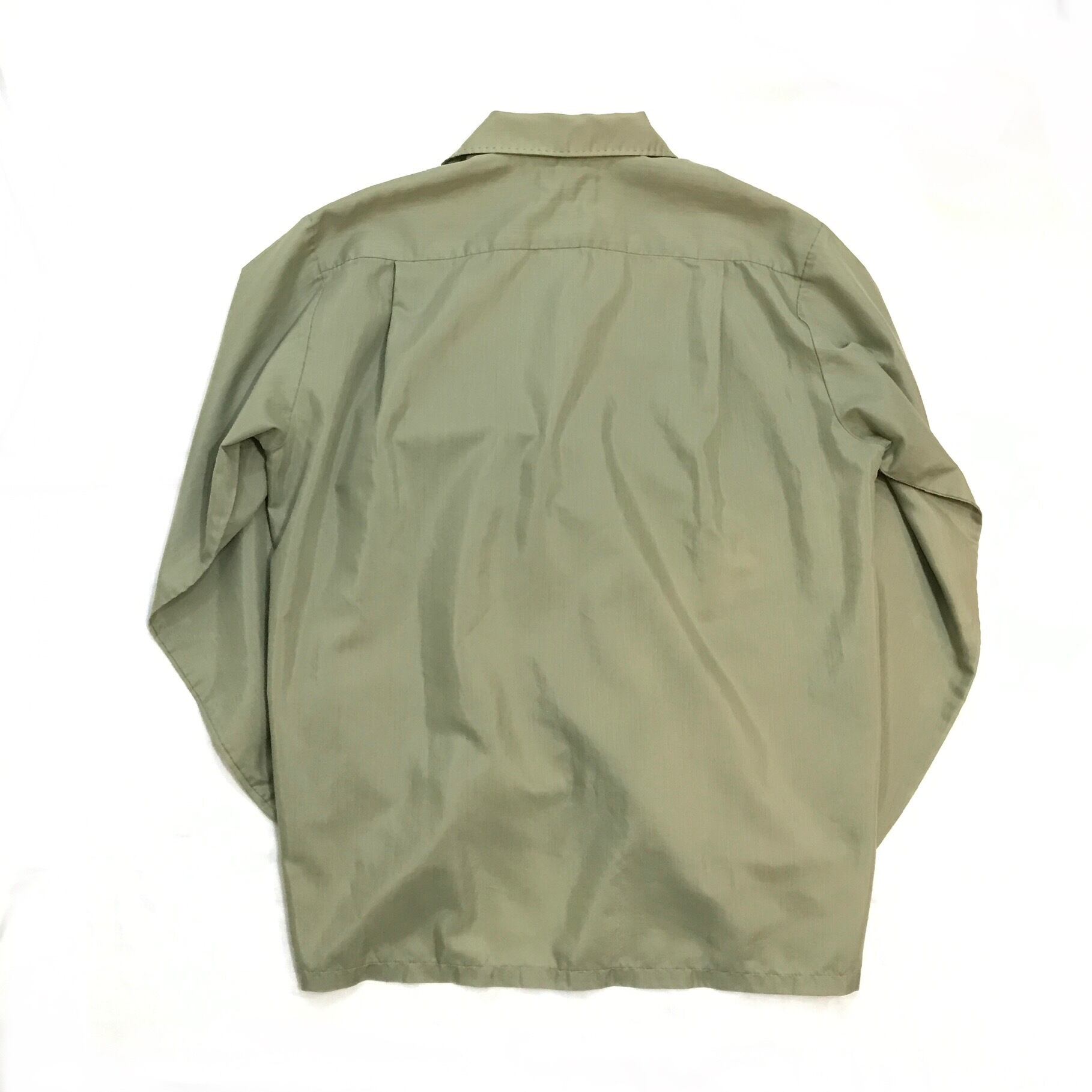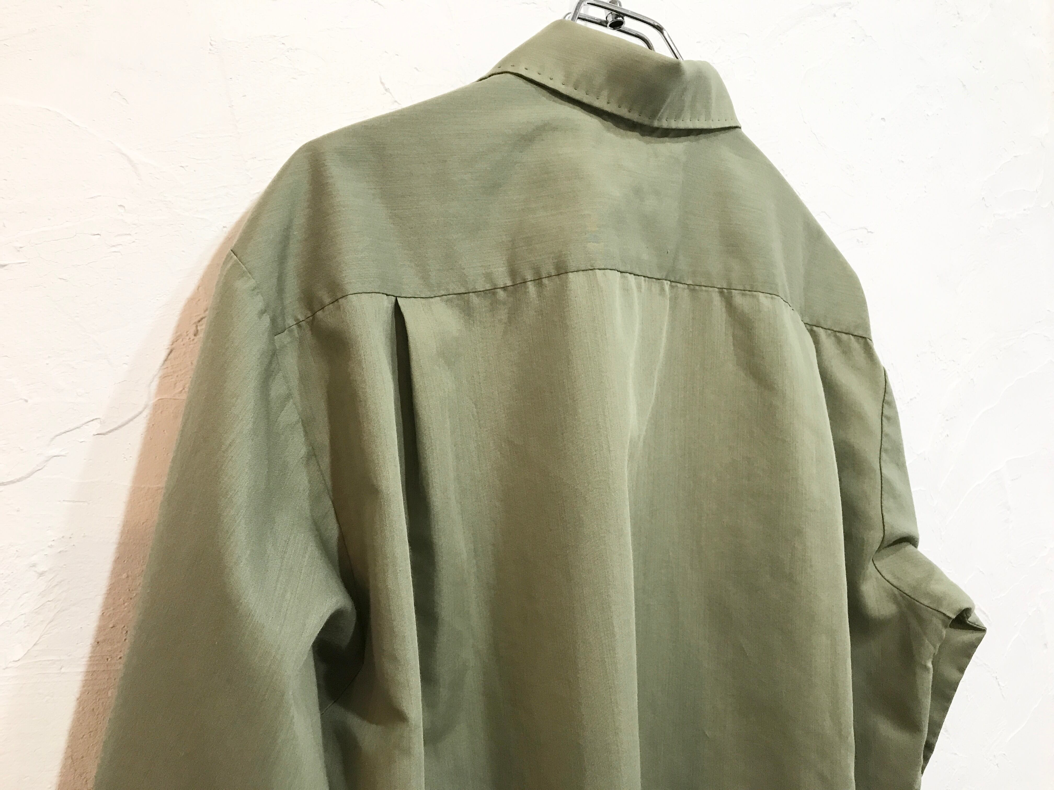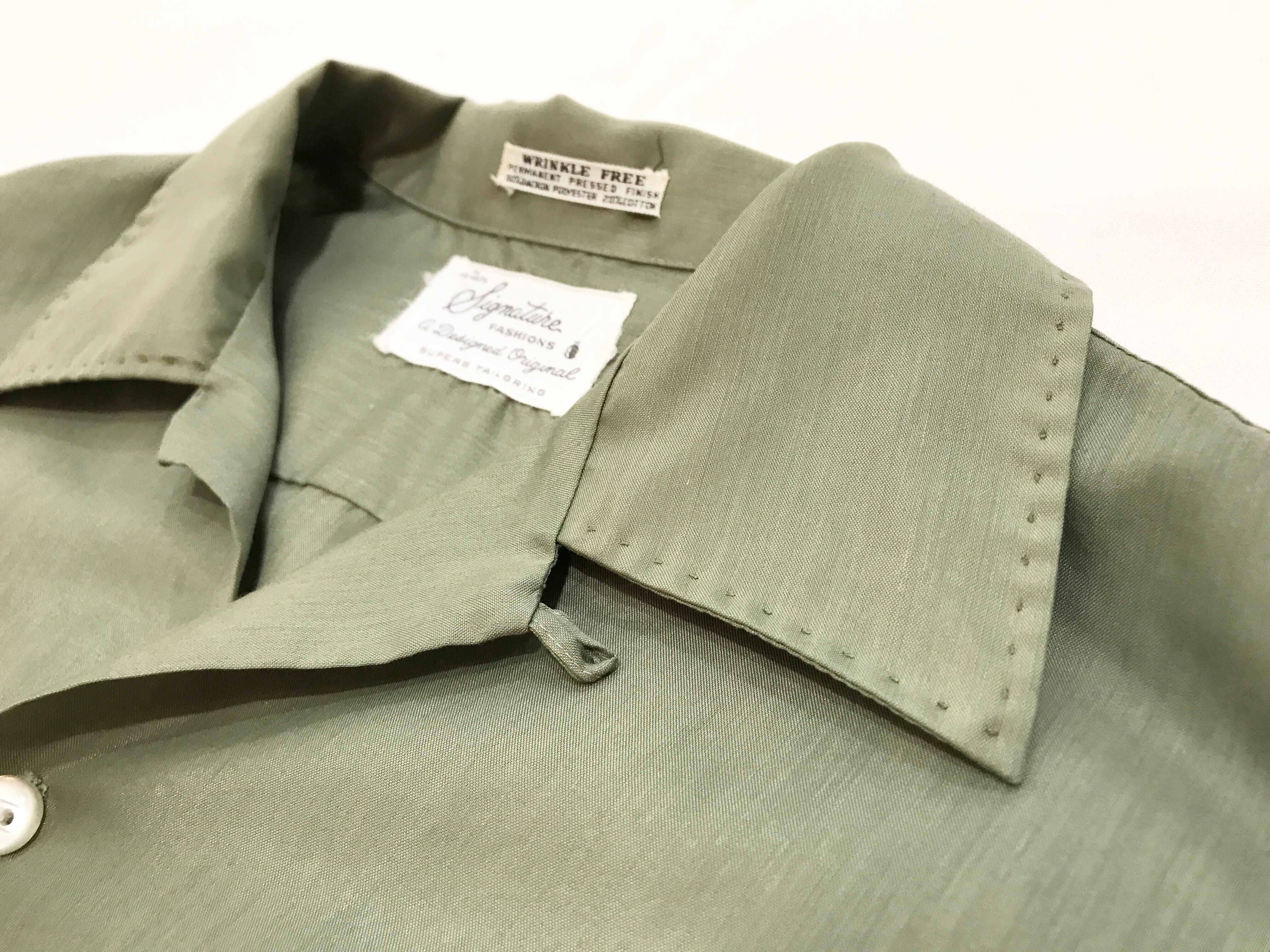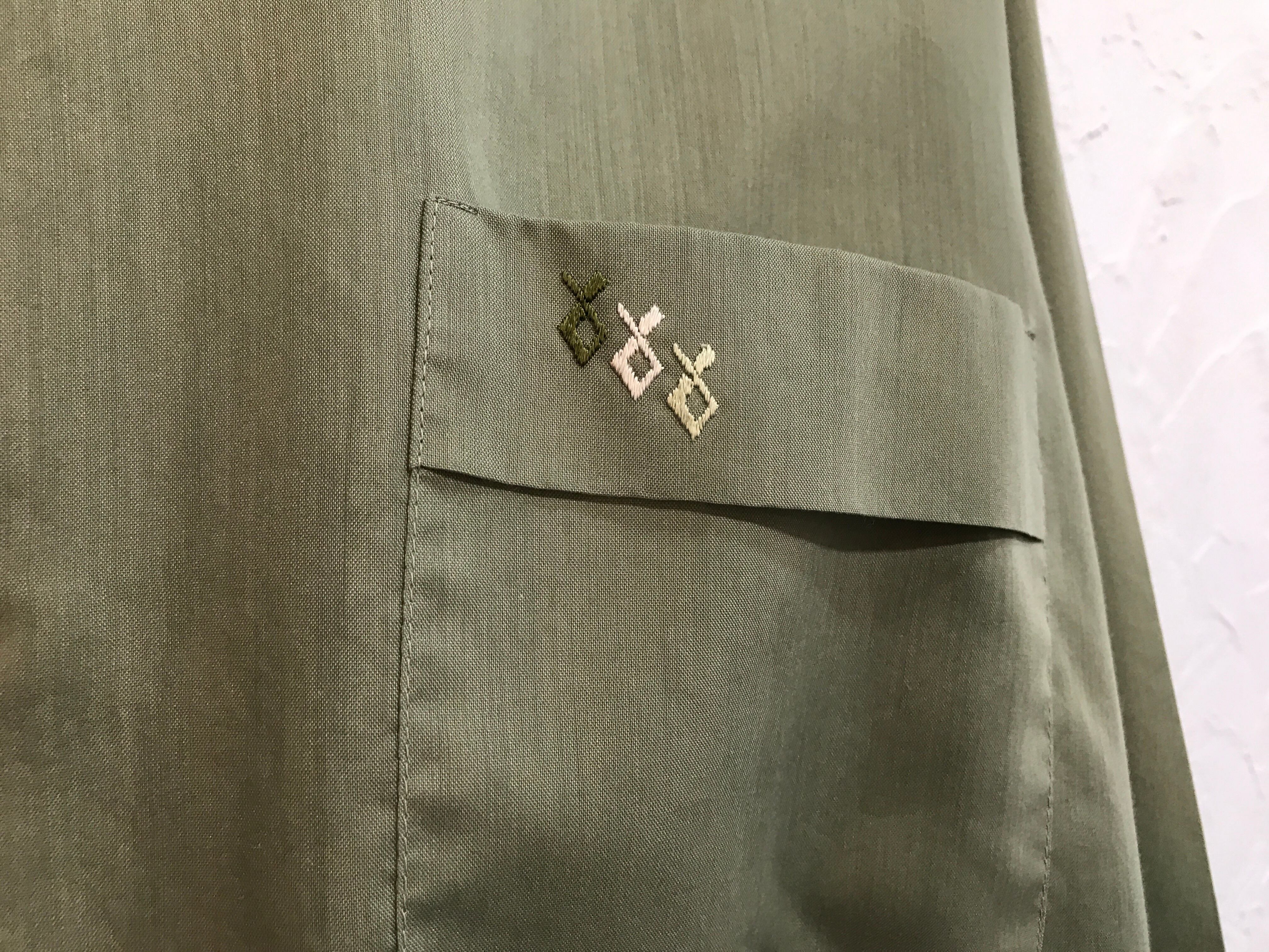60年代のとてもキレイなグリーンの開襟シャツ。ポケットには60年代らしい刺繍が施されており、襟には50年代の面影のあるハンドステッチが入っています。特徴のあるボタンは全てオリジナルで残っています。この年代のシャツはなかなか出てきませんのでお好きな方はぜひ。