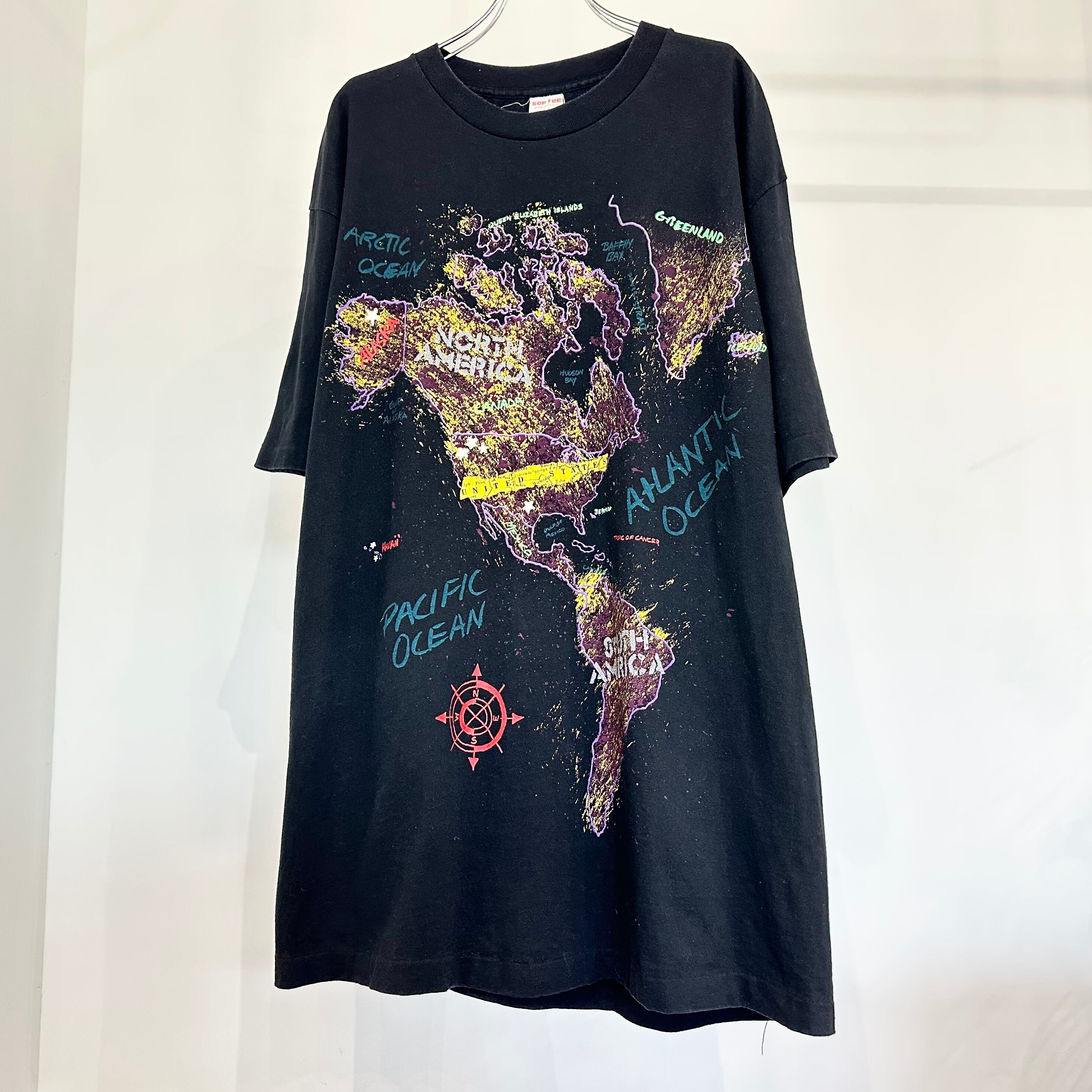 【USED】WILD OATS 世界地図 マップ Tシャツ ネオンカラー ビッグサイズ XXL